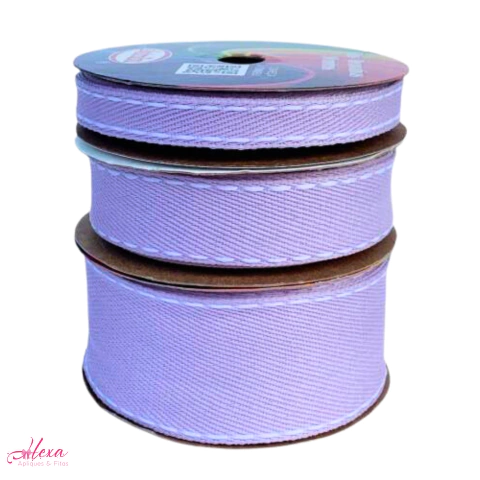Fita Sinimbu Jeans Lilás Candy Com Pesponto Branco - 10 Metros